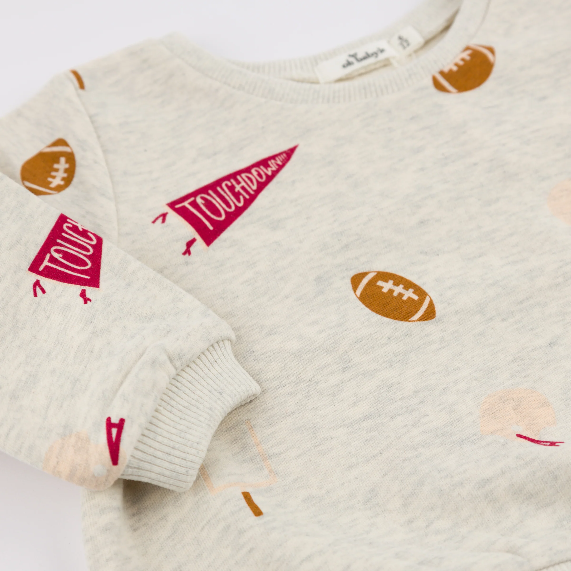 oh baby! Brooklyn Boxy Sweatshirt - Football Print - Oatmeal Heather